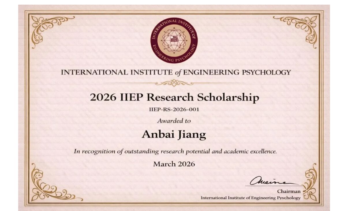 近日,清华大学电子工程系樊平毅教授指导的2022级 博士生姜安柏,荣获国际工程心理学研究所(International Institute of Engineering Psychology, IIEP)设立的IIEP科研奖学金(IIEP Research Scholarship), 以表彰其在人工智能算法及其在工业信号表征与分析方面取得的优秀成果,并激励其继续深耕、再创佳绩。获奖证书国际工程心理学研究所(IIEP)是全球工程心理学领域极具影响力的国际化研究机构,下设人机交互、人因工程....