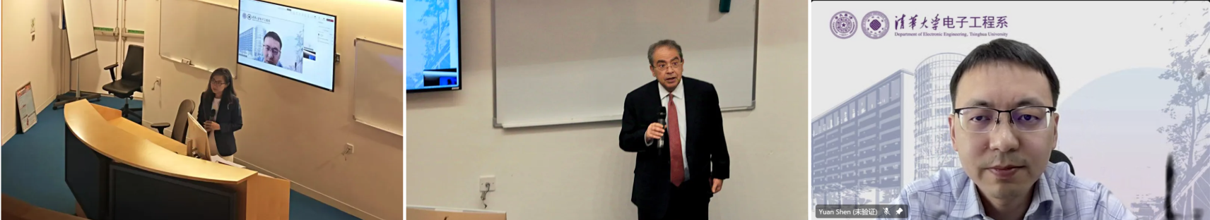 在院校介绍环节中,哈利法大学CSE副院长Amine Bermak与清华大学电子系副教授张沕淋分别介绍了哈利法大学CSE与清华电子系的历史沿革、现有成果、国际化进程与未来发展方向。清华大学电子系教授陆明泉、党委副书记李冬梅和哈利法大学CSE副教授Tanvir Alam、副教授Marco Agus等出席讨论。双方院系的精彩介绍,不仅加深了与会者对两所院校的了解与认识,更激发了双方对未来在国际化交流与合作领域深化互信、紧密协作的期待。