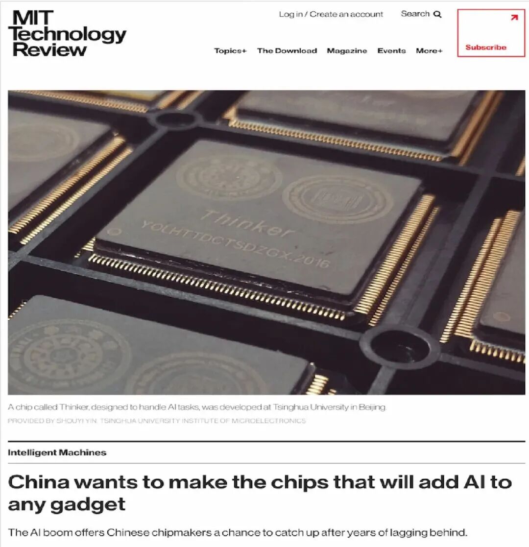 2017年,我和团队研制的“Thinker”系列可重构AI芯片,实测表明,在运行典型人工智能任务时,能效比显著高于同类GPU。《麻省理工科技评论》也 对这一成果,给予了“巅峰成就”(a crowning achievement)的高度评价。