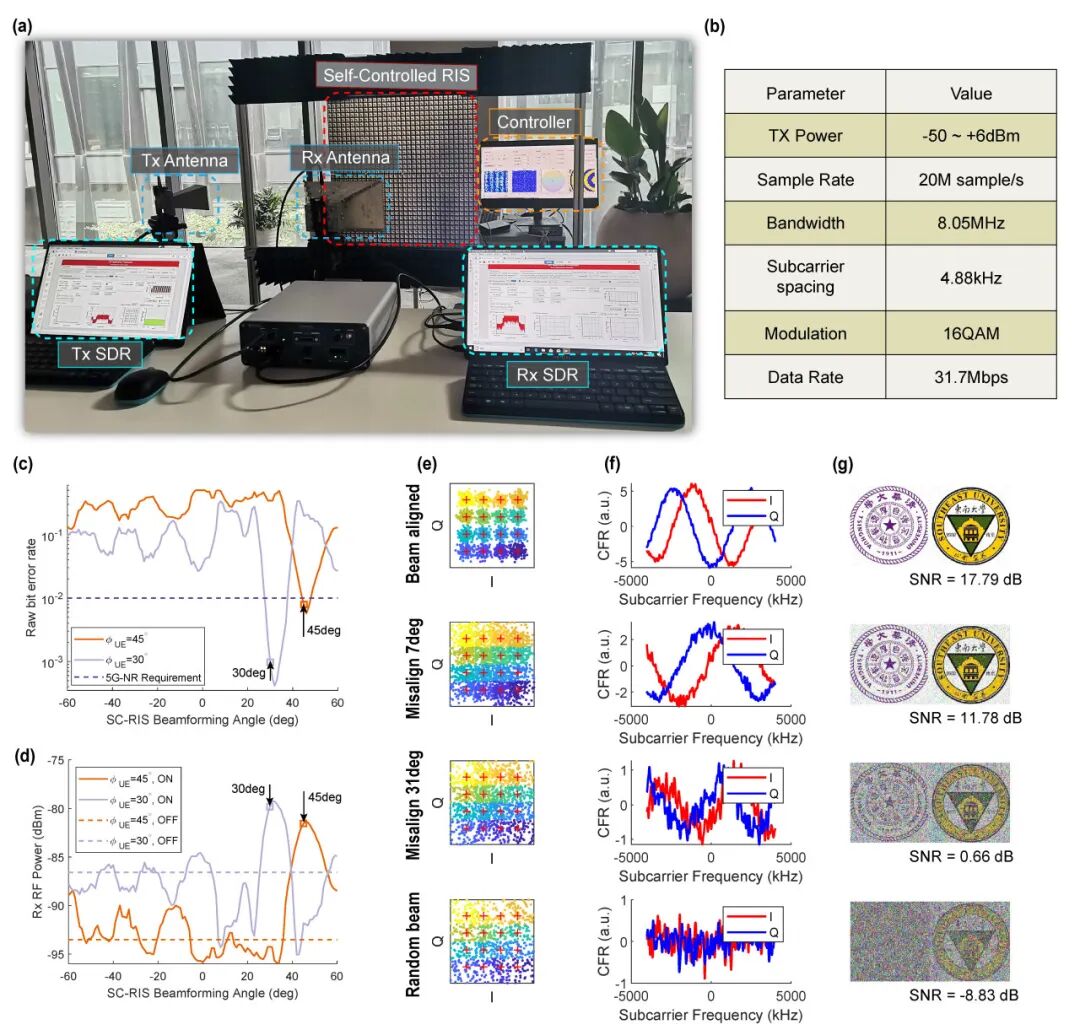 图6. SC-RIS辅助OFDM通信系统的实测结果