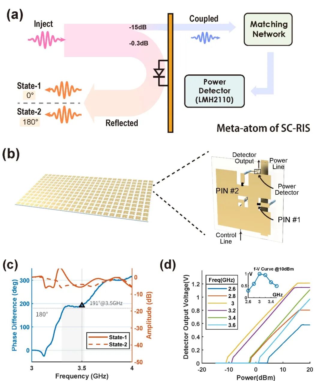 图3. 自控制RIS单元的硬件实现及电磁特性