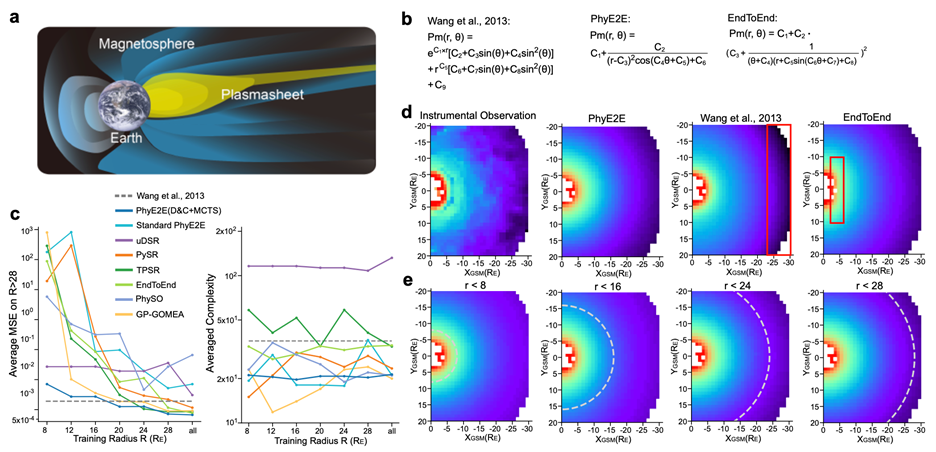 针对现有符号回归算法在可解释性与可扩展性上的瓶颈,清华大学数学科学中心副教授周源与清华大学智能产业研究院、电子系副教授马剑竹合作,提出了一个能够从观测数据中自动推导出空间物理规律的神经符号模型——PhyE2E(Physics End-to-End Symbolic Regression Framework),将大语言模型与物理知识相结合,建立了一个能够端到端生成、分解并优化物理公式的AI系统,在人工智能发现空间物理规律研究中取得重要进展。
