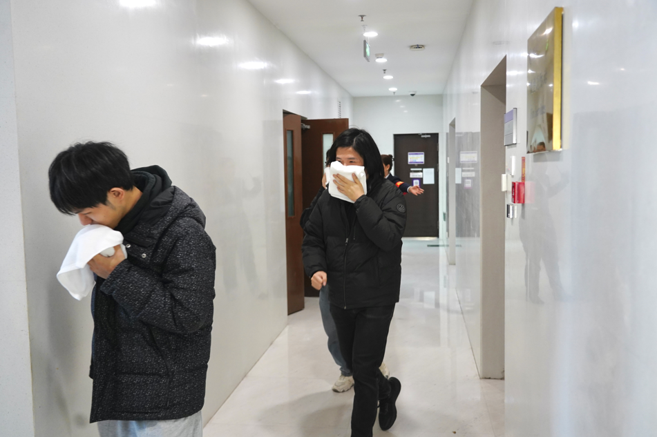 此外,学校防火科特邀专业消防评估工作组,对系馆消防疏散全流程开展了现场监测与综合评估。评估工作组组长在现场进行了总结点评,对本次消防演习的整体成效予以高度肯定。此外,评估组专家还与活动组织人员围绕演习组织、隐患排查等核心环节开展了深度交流。