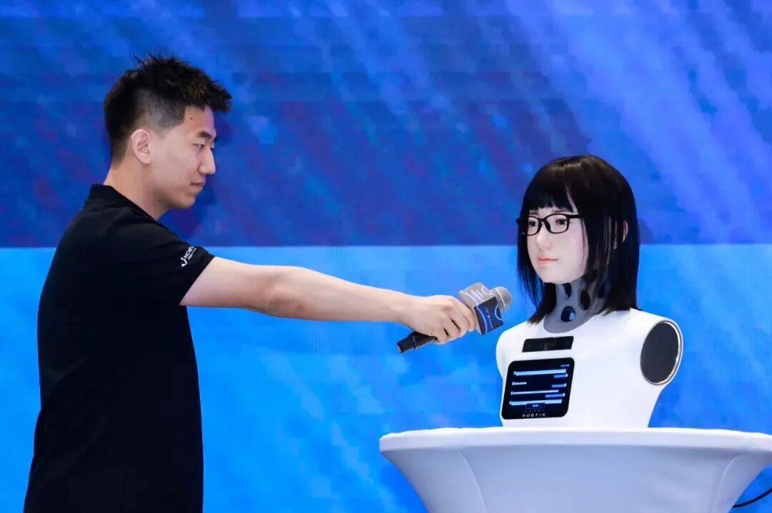 “小顽童”在松延动力生态大会上为观众 展示运动性