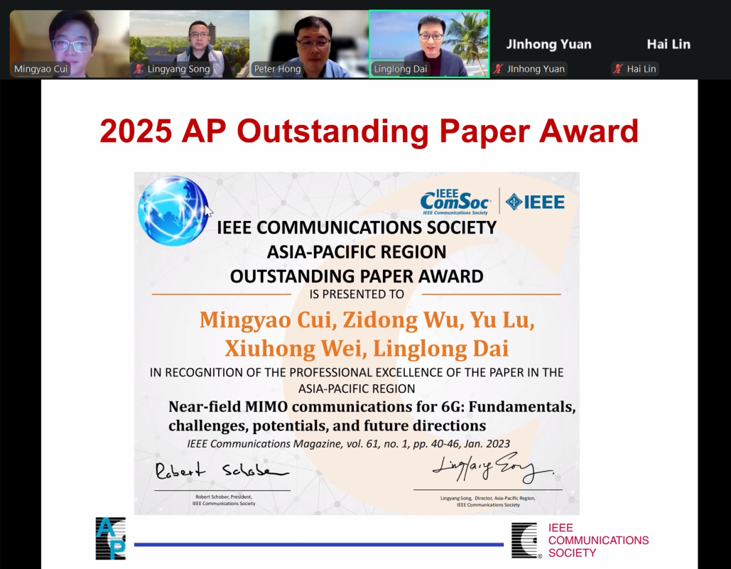 第十四届IEEE通信学会亚太杰出论文奖线上颁奖仪式