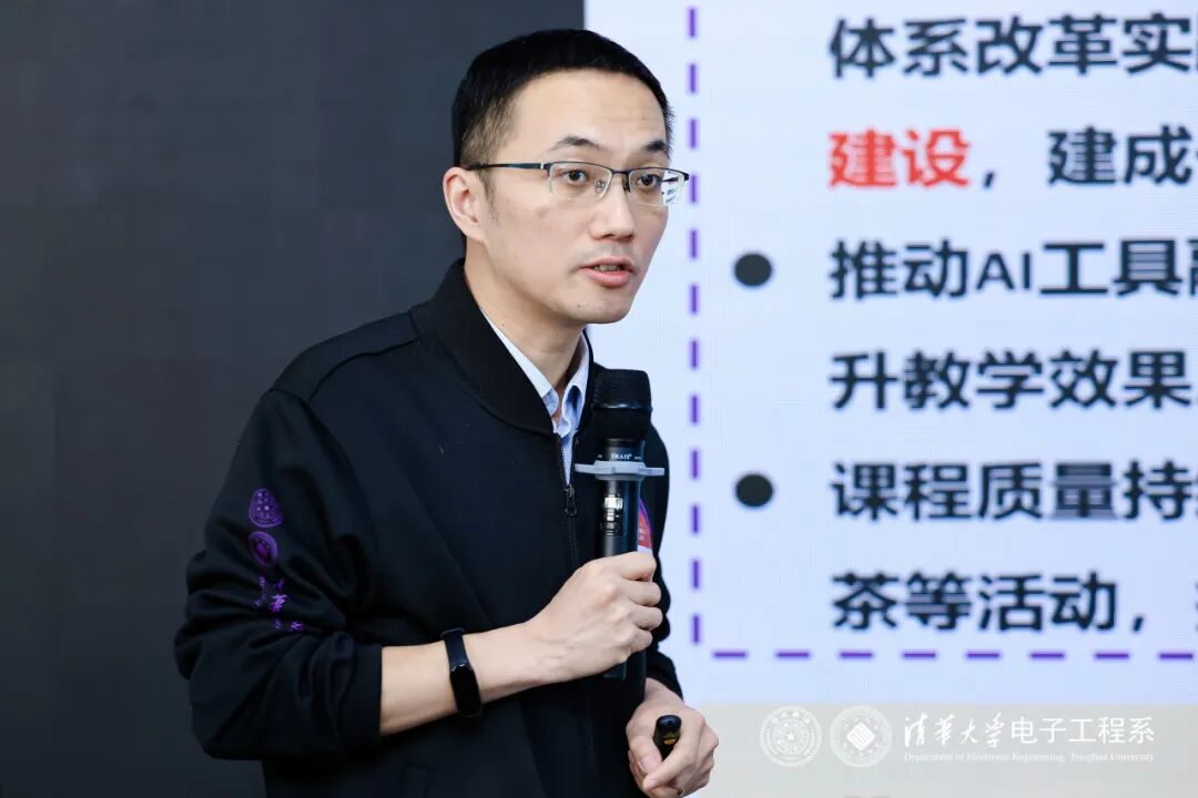 李懋坤在致辞中介绍了电子系在教书育人方面的整体进展。在本科教学方面,电子系完成了核心课程改革,完善了实验课程体系建设,推动AI教学改革。在招生环节深入大中衔接,引导学生深切感受学科魅力。持续推进因材施教项目,加强个性化培养,并开展与书院联合培养。研究生教学方面,在学术型学位的基础上,加强了专业学位的研究生项目建设。电子系努力建设教学支撑体系,营造支持教学的文化氛围,设立了多个奖项,表彰在教育教学、学术研究、助教服务与国际交流等方面表现突出的师生代表。