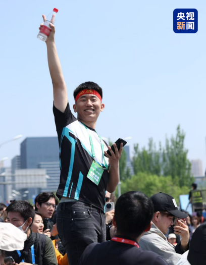 姜哲源在机器人马拉松终点