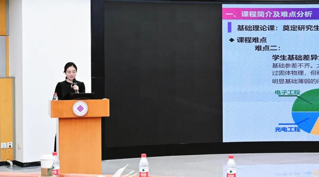 徐萌婧首先进行经验分享。她是2024年清华大学杰出助教奖、2025年“陆大䋮·刘润生优秀助教奖”一等奖获得者,前后担任《固体物理》、《固体表面分析》和《物理电子学实验课》等课程助教。她深耕基础理论课教学辅助工作,针对课程理论抽象、学生基础差异大、研究生重逻辑应用的核心难点,沉淀出辅助教学、因材施教、温暖陪伴三位一体的助教工作经验。她认为,辅助教学要聚焦抽象知识的直观化理解,搭建多维度教学支撑体系。优化课件需站在学生视角,通过绘制3D模型、添加动画、结合仿真代码,弥补纯理论描述的不足;批改作业写个性化评语,总结共性问题并配套习题课强化知识;同时做好教师搭档,提前试做试卷、沟通题干歧义、细化评分细则,统计每题得分助力老师分析学生知识薄弱点。她认为,助教工作要以温暖陪伴为底色,践行有温度的教学辅助。