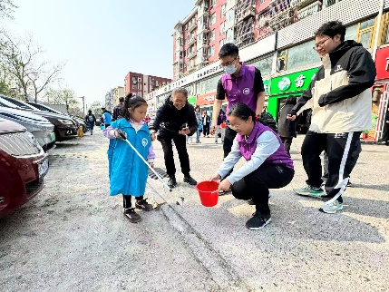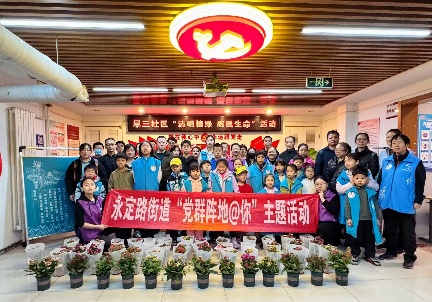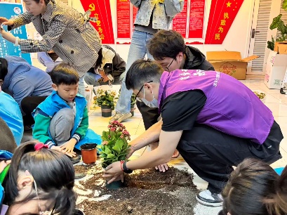 图:电子系研究生志愿者开展社区清扫和盆栽移植活动