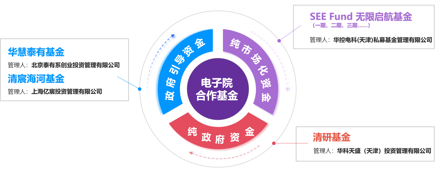 天津电子院专注赋能早期项目公司的发展,并通过与头部PE基金广泛合作,汇聚更多优质的资本力量和基管机构共同推动泛电子信息领域的科技成果转化。目前,清华电子院已依托纯市场化资金、纯政府资金、政府引导资金三种模式合作设立了SEE Fund无限启航基金、清研基金、华慧泰有基金、清宸海河基金,合作的基金规模超18亿元人民币,累计投资项目132个,投资金额超9亿元,其中清华电子系成果项目33个,清华其他院系项目42个,校系友项目28个,以上项目投资金额超7亿元。